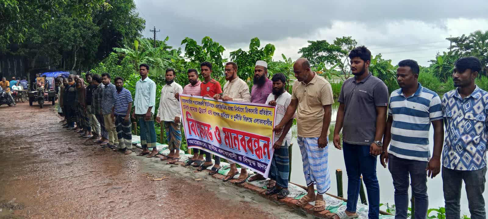 স্থানীয়দের অভিযোগ রাস্তার দুপাশে ঠিকমতো মাটি দেয়া হয়নি। এ সকল অনিয়মের অভিযোগে ওই এলাকার স্থানীয়রা গত অক্টোবর সকালে একটি মানববন্ধন করেন। মানববন্ধনে তারা বলেন, ঠিকাদারের সাথে ভাগাভাগি করে এই রাস্তার কাজ করছে মোরশেদ। যার কারণে রাস্তার দু’পাশে মাটি না দিয়ে কাজ চালিয়ে যাচ্ছে।
